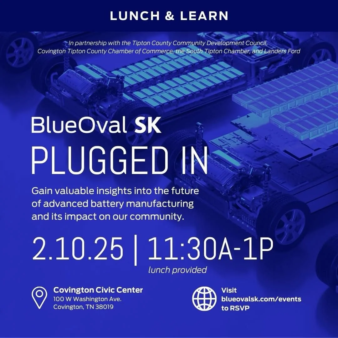 In partnership with Tipton County Community Development Council, Ford Blue Oval SK is cohosting a Lunch and Learn event on February 10th at 11:30 a.m. at the Covington Civic Center.